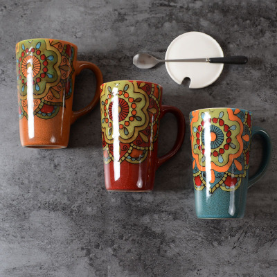 创意复古色釉咖啡杯茶水杯情侣杯子批发代发