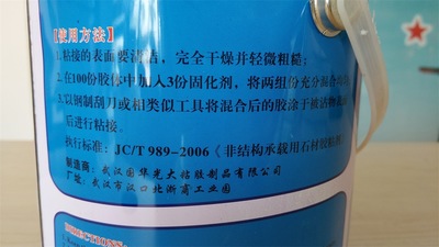 (3)混合比例:固化剂为云石胶的1-3%量加入,如需调节固化速度,适当调整固化剂用量;