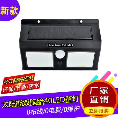 厂家直销新款太阳能灯40LED人体感应灯COB壁灯户外照明庭院灯防水