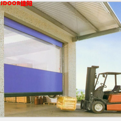 进口门帘:捷阳科技新型电动工业快速门采用高强度环保型聚酯纤维,双面聚氯乙烯涂层,厚度0.7mm-1.0mm.防腐、防盐、防紫外线;
