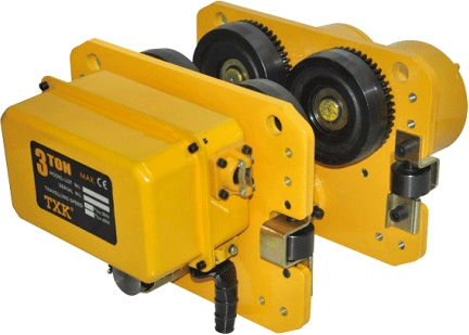 电动小车齿轮箱结构简单,马达重量轻,平衡性好。运行速度最快21m/min,慢速9m/min,电机功率0.4kw,最小转弯半径0.8