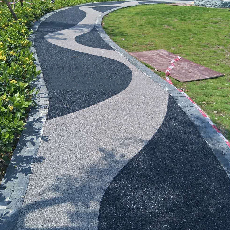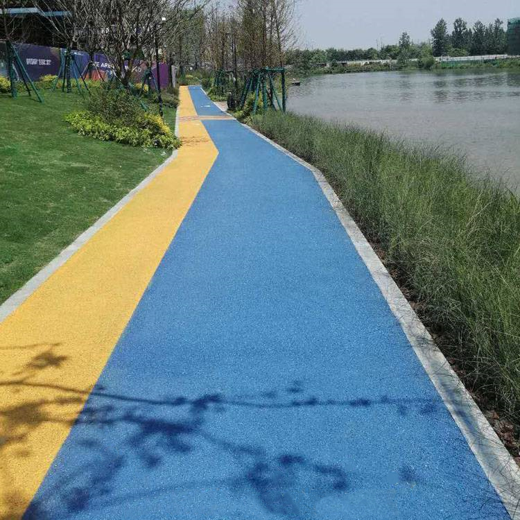 彩色混凝土透水路面的作用较多,一般包括:减少地表径 流、过滤补充地下水、改善生态与城市环境、吸声降噪几个方 面。相较于不透水路面,彩色混凝土透水路面可增加地表水人 渗量,降低地表径流系数,减慢雨水汇流速度,减少径流总量, 防止城市内涝。同时,有效补充地下水水位,降低地面下降概 率,并且,由于地表径流会携带污染物,进入自然水体后必然 加重自然水体污染,透水混凝土路面通过自身渗水路径维持 地下水稳定的同时削减径流污染。而采用彩色混凝土透水路 面铺装兼顾了人类活动需求,还能减轻对自然的破坏,有效保 护路面下的动植物、微生物的生存环境。彩色混凝土透水路面 具有与外部空气、下部透水垫层连通的多孔结构,垫层土壤中 丰富的毛细水通过自然蒸发和蒸腾作用可以有效缓解城市 “热岛效应”,改善城市热环境。加之其吸声降噪作用明显,在 多孔结构孔壁表面摩擦力和空气运动粘滞阻力的作用下,使 声波衰减,达到吸声降噪的目标。