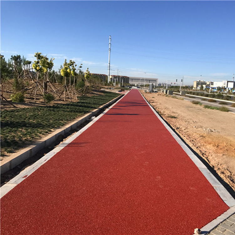 彩色混凝土透水路面的作用较多,一般包括:减少地表径 流、过滤补充地下水、改善生态与城市环境、吸声降噪几个方面。相较于不透水路面,彩色混凝土透水路面可增加地表水人 渗量,降低地表径流系数,减慢雨水汇流速度,减少径流总量, 防止城市内涝。同时,有效补充地下水水位,降低地面下降概 率,并且,由于地表径流会携带污染物,进入自然水体后必然 加重自然水体污染,透水混凝土路面通过自身渗水路径维持 地下水稳定的同时削减径流污染。而采用彩色混凝土透水路 面铺装兼顾了人类活动需求,还能减轻对自然的破坏,有效保护路面下的动植物、微生物的生存环境。彩色混凝土透水路面 具有与外部空气、下部透水垫层连通的多孔结构,垫层土壤中 丰富的毛细水通过自然蒸发和蒸腾作用可以有效缓解城市 “热岛效应”,改善城市热环境。