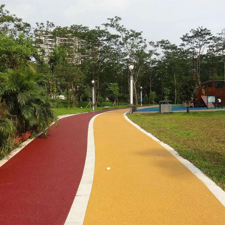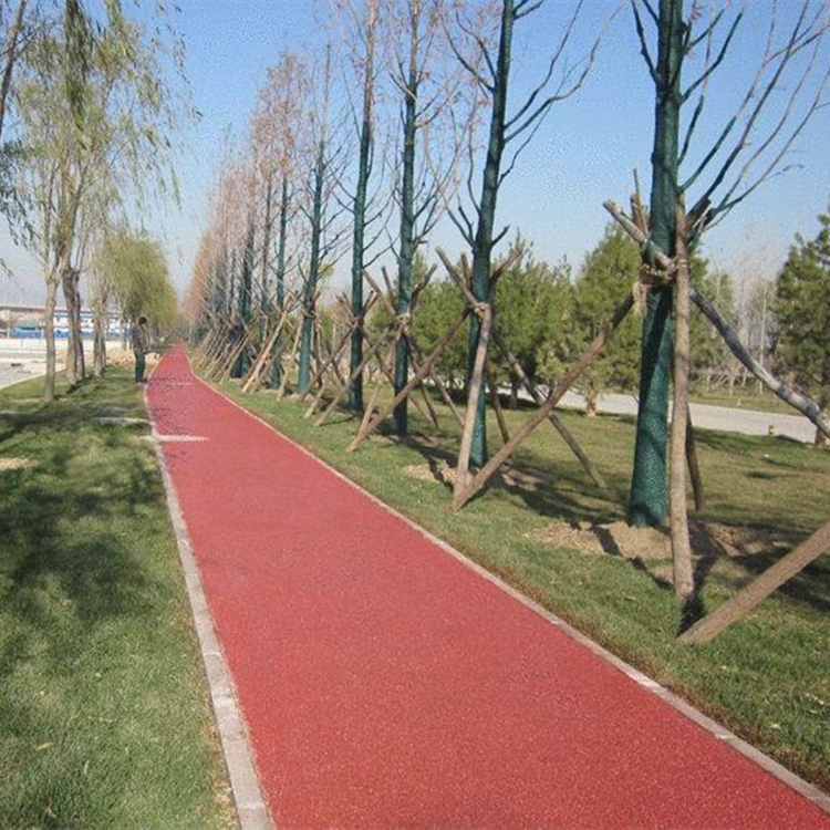 彩色混凝土透水路面的作用较多,一般包括:减少地表径 流、过滤补充地下水、改善生态与城市环境、吸声降噪几个方面。相较于不透水路面,彩色混凝土透水路面可增加地表水人 渗量,降低地表径流系数,减慢雨水汇流速度,减少径流总量, 防止城市内涝。同时,有效补充地下水水位,降低地面下降概 率,并且,由于地表径流会携带污染物,进入自然水体后必然 加重自然水体污染,透水混凝土路面通过自身渗水路径维持 地下水稳定的同时削减径流污染。而采用彩色混凝土透水路 面铺装兼顾了人类活动需求,还能减轻对自然的破坏,有效保护路面下的动植物、微生物的生存环境。彩色混凝土透水路面 具有与外部空气、下部透水垫层连通的多孔结构,垫层土壤中 丰富的毛细水通过自然蒸发和蒸腾作用可以有效缓解城市 “热岛效应”,改善城市热环境。