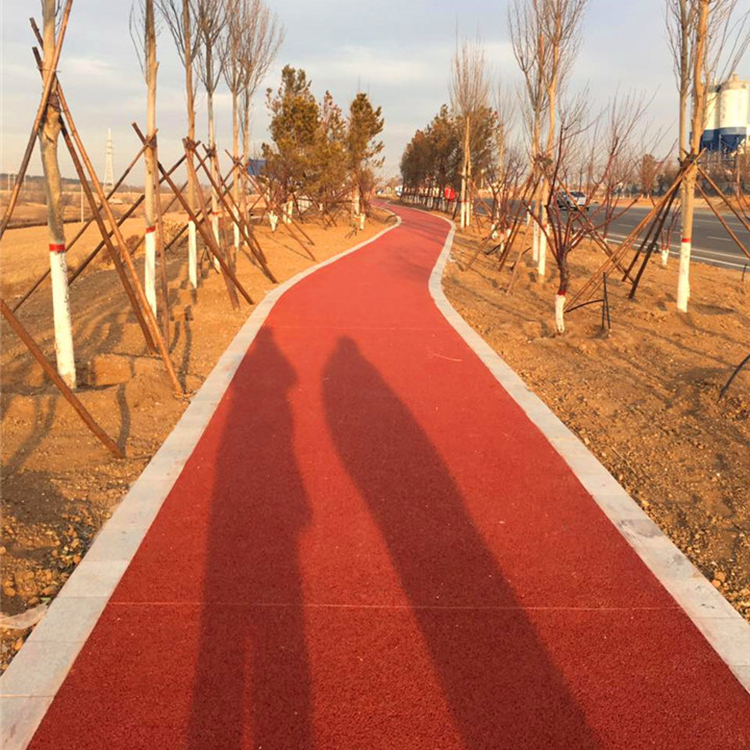 彩色透水混凝土使用单粒级粗骨料为骨架,加入少量细 骨料或水泥净浆作为骨料颗粒问的胶结层,形成具有孔隙结 构的多孔混凝土材料,即形成蜂窝状结构,因此,具有良好的 透水性。将彩色透水性混凝土直接摊铺在路基基层上,经压 实、养护等工艺形成的路面即为彩色砼透水路面,其中彩色有 助于改变混凝土外观,形成显著标识,而透水性混凝土能够实 现稳定、均质,确保地表径流Ill卿j渗透到地下,相较于传统封闭性路基属开放式结构。